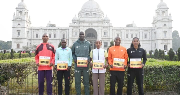 Tata Steel World 25K Kolkata 2025-International top Elite athletes at the Iconic Victoria Memorial (L to R), Alphonce Felix Simbu (Tanzania); Agnes Keino (Kenya); Joshua Cheptegei (Uganda); Sutume Asefa Kebede (Ethiopia); Tebello Ramakonga (Lesotho) and Degitu Azimeraw (Ethiopia).